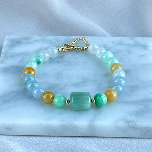 112788 Icy Macaron Type A Jadeite Beaded Bracelet