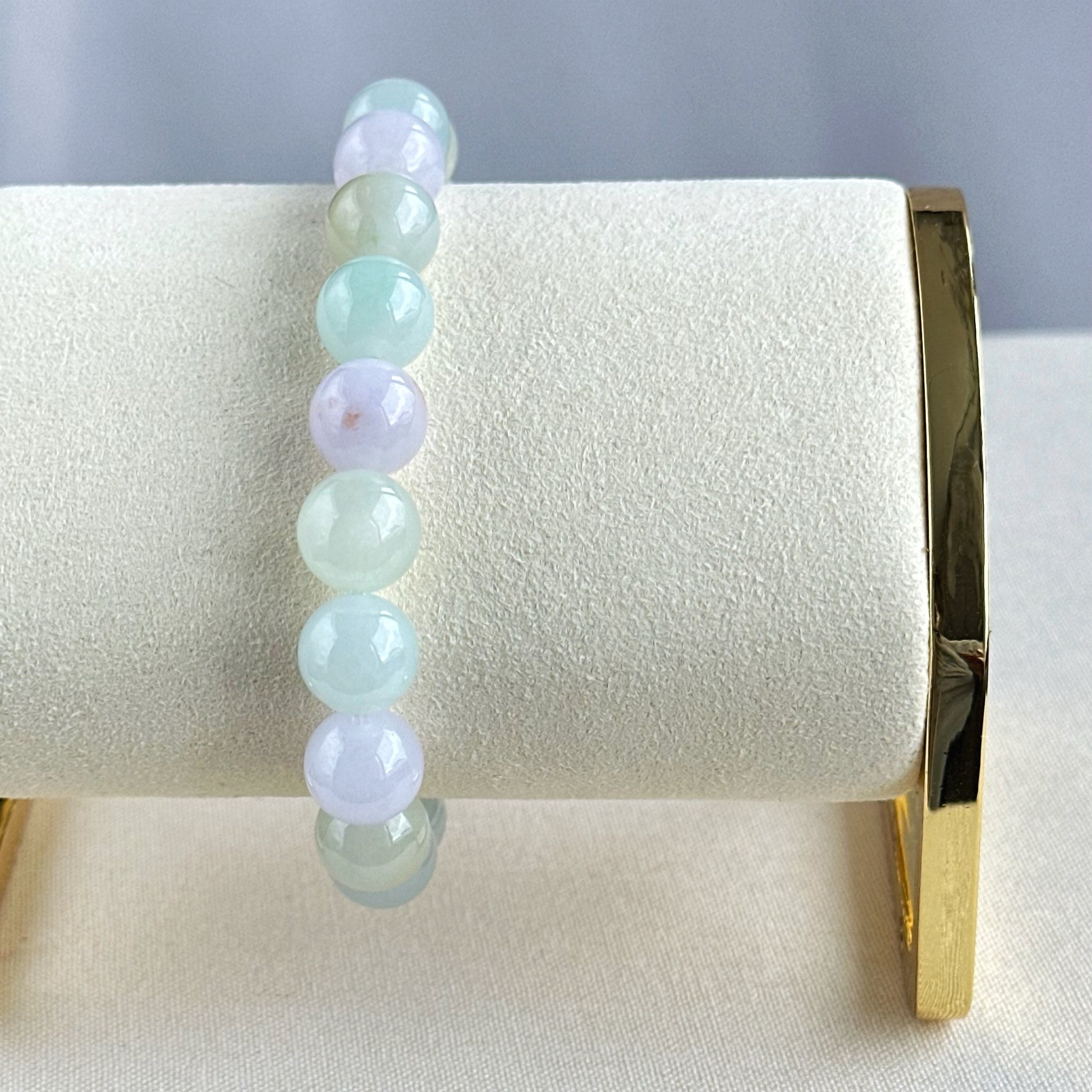 Sweet, delicate, and effortlessly charming, the Macaron Blush Jade Bracelet is a dreamy blend of soft pastel hues, reminiscent of the finest French macarons. With a harmonious mix of icy lavender, creamy mint, and blush peach, this bracelet radiates a whimsical yet elegant charm.