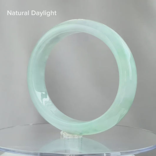 The combination of icy translucency, balanced green distribution, and the rare hint of lavender makes this bangle a distinguished addition for serious jade collectors. Its elegant play of colours ensures that no two angles look the same, offering a dynamic beauty that feels alive in the light. Blooming Breeze is a wearable masterpiece — serene yet full of vitality, making it a piece that resonates deeply with both the heart and the collector’s eye.